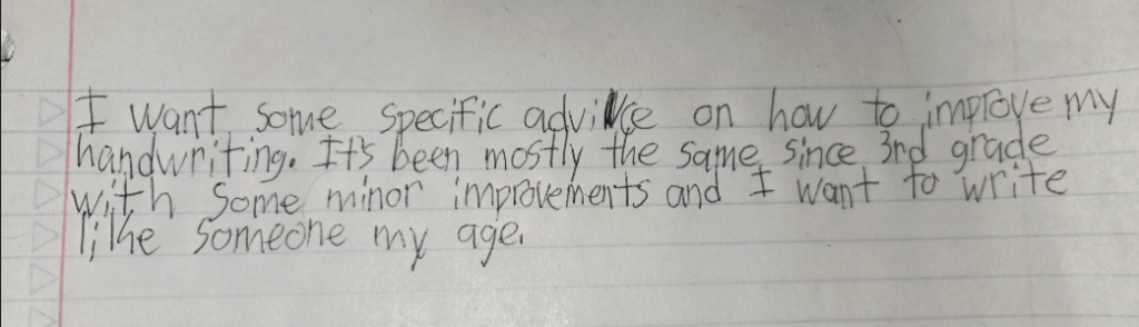 With personalised lessons, you gain a good understanding of what is holding your handwriting back. It very much depends on how your handwriting was before the lessons. For instance, it is a great accomplishment to have legible handwriting at the end of the program if it was barely readable before.